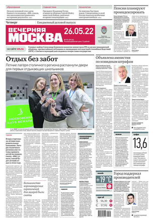 «Вечерняя Москва» — ежедневная российская вечерняя газета, старейшее из вечерних изданий в России, учрежденное в 1923 году. Выходит пять дней в неделю, кроме субботы и воскресенья. Отличается тем, что рассказывает о событиях еще не завершившегося дня. Оперативно освещает хронику и особенности жизни Москвы, охватывает все слои общества и большинство профессиональных и возрастных групп читателей.Издание представлено тремя выпусками – утренним ежедневным, вечерним (выходит три раза в неделю), еженедельным (выходит по четвергам).