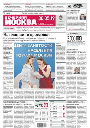 «Вечерняя Москва» — ежедневная российская вечерняя газета, старейшее из вечерних изданий в России, учрежденное в 1923 году. Выходит пять дней в неделю, кроме субботы и воскресенья. Отличается тем, что рассказывает о событиях еще не завершившегося дня. Оперативно освещает хронику и особенности жизни Москвы, охватывает все слои общества и большинство профессиональных и возрастных групп читателей.Издание представлено тремя выпусками – утренним ежедневным, вечерним (выходит три раза в неделю), еженедельным (выходит по четвергам).