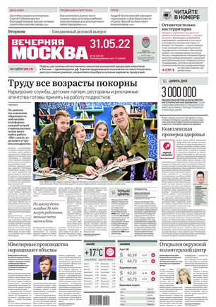 «Вечерняя Москва» — ежедневная российская вечерняя газета, старейшее из вечерних изданий в России, учрежденное в 1923 году. Выходит пять дней в неделю, кроме субботы и воскресенья. Отличается тем, что рассказывает о событиях еще не завершившегося дня. Оперативно освещает хронику и особенности жизни Москвы, охватывает все слои общества и большинство профессиональных и возрастных групп читателей.Издание представлено тремя выпусками – утренним ежедневным, вечерним (выходит три раза в неделю), еженедельным (выходит по четвергам).