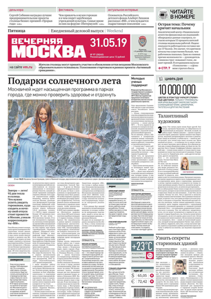 «Вечерняя Москва» — ежедневная российская вечерняя газета, старейшее из вечерних изданий в России, учрежденное в 1923 году. Выходит пять дней в неделю, кроме субботы и воскресенья. Отличается тем, что рассказывает о событиях еще не завершившегося дня. Оперативно освещает хронику и особенности жизни Москвы, охватывает все слои общества и большинство профессиональных и возрастных групп читателей.Издание представлено тремя выпусками – утренним ежедневным, вечерним (выходит три раза в неделю), еженедельным (выходит по четвергам).