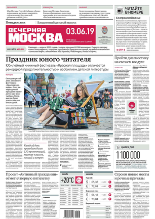 «Вечерняя Москва» — ежедневная российская вечерняя газета, старейшее из вечерних изданий в России, учрежденное в 1923 году. Выходит пять дней в неделю, кроме субботы и воскресенья. Отличается тем, что рассказывает о событиях еще не завершившегося дня. Оперативно освещает хронику и особенности жизни Москвы, охватывает все слои общества и большинство профессиональных и возрастных групп читателей.Издание представлено тремя выпусками – утренним ежедневным, вечерним (выходит три раза в неделю), еженедельным (выходит по четвергам).