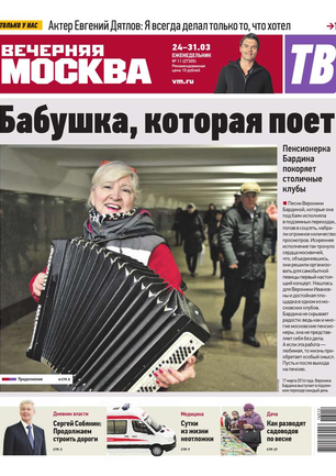 Еженедельный выпуск «Вечерней Москвы» — это значимые события недели, афиша города, новости из сферы отдыха и развлечений, телепрограмма с анонсами и комментариями, авторские колонки журналистов и авторитетные мнения экспертов, детская страничка, специальная рубрика «Золушка», интересные репортажи о необычных судьбах московских жителей, постоянные конкурсы и викторины.