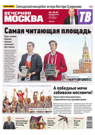«Вечерняя Москва» — ежедневная российская вечерняя газета, старейшее из вечерних изданий в России, учрежденное в 1923 году. Выходит пять дней в неделю, кроме субботы и воскресенья. Отличается тем, что рассказывает о событиях еще не завершившегося дня. Оперативно освещает хронику и особенности жизни Москвы, охватывает все слои общества и большинство профессиональных и возрастных групп читателей.Издание представлено тремя выпусками – утренним ежедневным, вечерним (выходит три раза в неделю), еженедельным (выходит по четвергам).