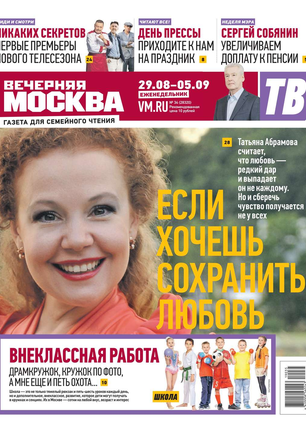 Еженедельный выпуск «Вечерней Москвы» — это значимые события недели, афиша города, новости из сферы отдыха и развлечений, телепрограмма с анонсами и комментариями, авторские колонки журналистов и авторитетные мнения экспертов, детская страничка, специальная рубрика «Золушка», интересные репортажи о необычных судьбах московских жителей, постоянные конкурсы и викторины.