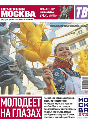 Еженедельный выпуск «Вечерней Москвы» — это значимые события недели, афиша города, новости из сферы отдыха и развлечений, телепрограмма с анонсами и комментариями, авторские колонки журналистов и авторитетные мнения экспертов, детская страничка, специальная рубрика «Золушка», интересные репортажи о необычных судьбах московских жителей, постоянные конкурсы и викторины.