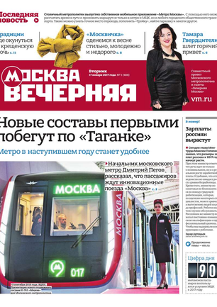 «Вечерняя Москва» — ежедневная российская вечерняя газета, старейшее из вечерних изданий в России, учрежденное в 1923 году. Выходит пять дней в неделю, кроме субботы и воскресенья. Отличается тем, что рассказывает о событиях еще не завершившегося дня. Оперативно освещает хронику и особенности жизни Москвы, охватывает все слои общества и большинство профессиональных и возрастных групп читателей.Издание представлено тремя выпусками – утренним ежедневным, вечерним (выходит три раза в неделю), еженедельным (выходит по четвергам).