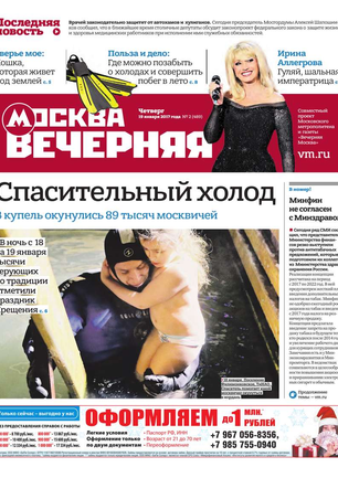 «Вечерняя Москва» — ежедневная российская вечерняя газета, старейшее из вечерних изданий в России, учрежденное в 1923 году. Выходит пять дней в неделю, кроме субботы и воскресенья. Отличается тем, что рассказывает о событиях еще не завершившегося дня. Оперативно освещает хронику и особенности жизни Москвы, охватывает все слои общества и большинство профессиональных и возрастных групп читателей.Издание представлено тремя выпусками – утренним ежедневным, вечерним (выходит три раза в неделю), еженедельным (выходит по четвергам).