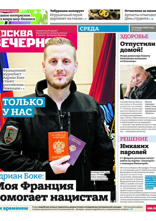 «Вечерняя Москва» — ежедневная российская вечерняя газета, старейшее из вечерних изданий в России, учрежденное в 1923 году. Выходит пять дней в неделю, кроме субботы и воскресенья. Отличается тем, что рассказывает о событиях еще не завершившегося дня. Оперативно освещает хронику и особенности жизни Москвы, охватывает все слои общества и большинство профессиональных и возрастных групп читателей.Издание представлено тремя выпусками – утренним ежедневным, вечерним (выходит три раза в неделю), еженедельным (выходит по четвергам).