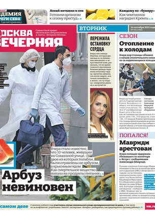 «Вечерняя Москва» — ежедневная российская вечерняя газета, старейшее из вечерних изданий в России, учрежденное в 1923 году. Выходит пять дней в неделю, кроме субботы и воскресенья. Отличается тем, что рассказывает о событиях еще не завершившегося дня. Оперативно освещает хронику и особенности жизни Москвы, охватывает все слои общества и большинство профессиональных и возрастных групп читателей.Издание представлено тремя выпусками – утренним ежедневным, вечерним (выходит три раза в неделю), еженедельным (выходит по четвергам).