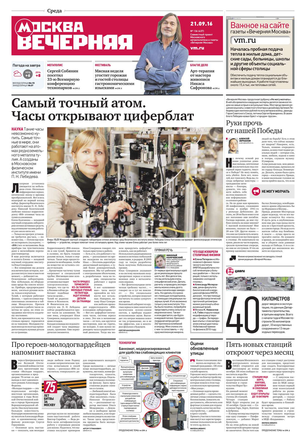 «Вечерняя Москва» — ежедневная российская вечерняя газета, старейшее из вечерних изданий в России, учрежденное в 1923 году. Выходит пять дней в неделю, кроме субботы и воскресенья. Отличается тем, что рассказывает о событиях еще не завершившегося дня. Оперативно освещает хронику и особенности жизни Москвы, охватывает все слои общества и большинство профессиональных и возрастных групп читателей.Издание представлено тремя выпусками – утренним ежедневным, вечерним (выходит три раза в неделю), еженедельным (выходит по четвергам).