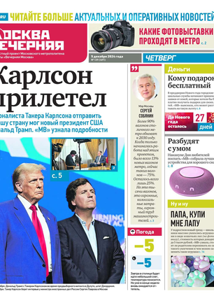 «Вечерняя Москва» — ежедневная российская вечерняя газета, старейшее из вечерних изданий в России, учрежденное в 1923 году. Выходит пять дней в неделю, кроме субботы и воскресенья. Отличается тем, что рассказывает о событиях еще не завершившегося дня. Оперативно освещает хронику и особенности жизни Москвы, охватывает все слои общества и большинство профессиональных и возрастных групп читателей.Издание представлено тремя выпусками – утренним ежедневным, вечерним (выходит три раза в неделю), еженедельным (выходит по четвергам).