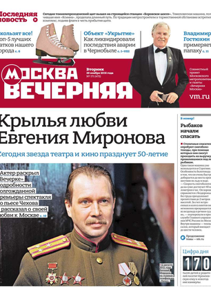 «Вечерняя Москва» — ежедневная российская вечерняя газета, старейшее из вечерних изданий в России, учрежденное в 1923 году. Выходит пять дней в неделю, кроме субботы и воскресенья. Отличается тем, что рассказывает о событиях еще не завершившегося дня. Оперативно освещает хронику и особенности жизни Москвы, охватывает все слои общества и большинство профессиональных и возрастных групп читателей.Издание представлено тремя выпусками – утренним ежедневным, вечерним (выходит три раза в неделю), еженедельным (выходит по четвергам).