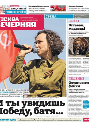 «Вечерняя Москва» — ежедневная российская вечерняя газета, старейшее из вечерних изданий в России, учрежденное в 1923 году. Выходит пять дней в неделю, кроме субботы и воскресенья. Отличается тем, что рассказывает о событиях еще не завершившегося дня. Оперативно освещает хронику и особенности жизни Москвы, охватывает все слои общества и большинство профессиональных и возрастных групп читателей.Издание представлено тремя выпусками – утренним ежедневным, вечерним (выходит три раза в неделю), еженедельным (выходит по четвергам).