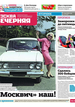 «Вечерняя Москва» — ежедневная российская вечерняя газета, старейшее из вечерних изданий в России, учрежденное в 1923 году. Выходит пять дней в неделю, кроме субботы и воскресенья. Отличается тем, что рассказывает о событиях еще не завершившегося дня. Оперативно освещает хронику и особенности жизни Москвы, охватывает все слои общества и большинство профессиональных и возрастных групп читателей.Издание представлено тремя выпусками – утренним ежедневным, вечерним (выходит три раза в неделю), еженедельным (выходит по четвергам).