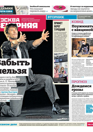«Вечерняя Москва» — ежедневная российская вечерняя газета, старейшее из вечерних изданий в России, учрежденное в 1923 году. Выходит пять дней в неделю, кроме субботы и воскресенья. Отличается тем, что рассказывает о событиях еще не завершившегося дня. Оперативно освещает хронику и особенности жизни Москвы, охватывает все слои общества и большинство профессиональных и возрастных групп читателей.Издание представлено тремя выпусками – утренним ежедневным, вечерним (выходит три раза в неделю), еженедельным (выходит по четвергам).