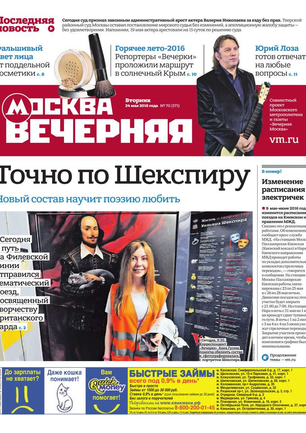 «Вечерняя Москва» — ежедневная российская вечерняя газета, старейшее из вечерних изданий в России, учрежденное в 1923 году. Выходит пять дней в неделю, кроме субботы и воскресенья. Отличается тем, что рассказывает о событиях еще не завершившегося дня. Оперативно освещает хронику и особенности жизни Москвы, охватывает все слои общества и большинство профессиональных и возрастных групп читателей.Издание представлено тремя выпусками – утренним ежедневным, вечерним (выходит три раза в неделю), еженедельным (выходит по четвергам).