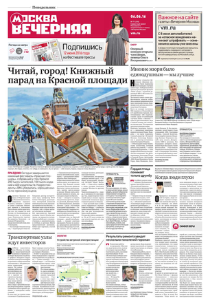 «Вечерняя Москва» — ежедневная российская вечерняя газета, старейшее из вечерних изданий в России, учрежденное в 1923 году. Выходит пять дней в неделю, кроме субботы и воскресенья. Отличается тем, что рассказывает о событиях еще не завершившегося дня. Оперативно освещает хронику и особенности жизни Москвы, охватывает все слои общества и большинство профессиональных и возрастных групп читателей.Издание представлено тремя выпусками – утренним ежедневным, вечерним (выходит три раза в неделю), еженедельным (выходит по четвергам).
