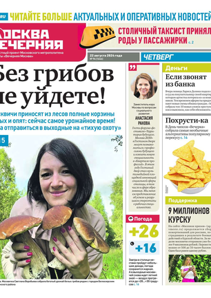 «Вечерняя Москва» — ежедневная российская вечерняя газета, старейшее из вечерних изданий в России, учрежденное в 1923 году. Выходит пять дней в неделю, кроме субботы и воскресенья. Отличается тем, что рассказывает о событиях еще не завершившегося дня. Оперативно освещает хронику и особенности жизни Москвы, охватывает все слои общества и большинство профессиональных и возрастных групп читателей.Издание представлено тремя выпусками – утренним ежедневным, вечерним (выходит три раза в неделю), еженедельным (выходит по четвергам).