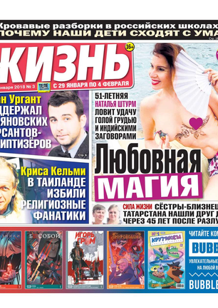 Еженедельная газета, предназначенная для семейного чтения. Основные рубрики: самые скандальные и интересные события прошедшей недели, политический комментарий Леонида Шахова, пикантные истории из звездной жизни, советы профессионального психолога, действенные рецепты здоровья, гороскоп, кроссворд, конкурсы, сканворды, розыгрыши билетов в кинотеатры и множество других призов. Приложения к газете «Жизнь»: «Телеэкран» - телепрограмма с подробными анонсами кино и сериалов, «Овертайм» - спортивное обозрение.