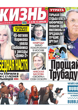 Еженедельная газета, предназначенная для семейного чтения. Основные рубрики: самые скандальные и интересные события прошедшей недели, политический комментарий Леонида Шахова, пикантные истории из звездной жизни, советы профессионального психолога, действенные рецепты здоровья, гороскоп, кроссворд, конкурсы, сканворды, розыгрыши билетов в кинотеатры и множество других призов. Приложения к газете «Жизнь»: «Телеэкран» - телепрограмма с подробными анонсами кино и сериалов, «Овертайм» - спортивное обозрение.