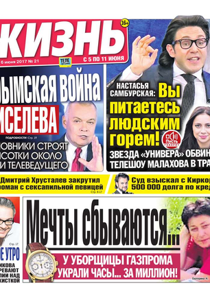 Еженедельная газета, предназначенная для семейного чтения. Основные рубрики: самые скандальные и интересные события прошедшей недели, политический комментарий Леонида Шахова, пикантные истории из звездной жизни, советы профессионального психолога, действенные рецепты здоровья, гороскоп, кроссворд, конкурсы, сканворды, розыгрыши билетов в кинотеатры и множество других призов. Приложения к газете «Жизнь»: «Телеэкран» - телепрограмма с подробными анонсами кино и сериалов, «Овертайм» - спортивное обозрение.