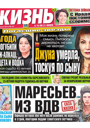 Еженедельная газета, предназначенная для семейного чтения. Основные рубрики: самые скандальные и интересные события прошедшей недели, политический комментарий Леонида Шахова, пикантные истории из звездной жизни, советы профессионального психолога, действенные рецепты здоровья, гороскоп, кроссворд, конкурсы, сканворды, розыгрыши билетов в кинотеатры и множество других призов. Приложения к газете «Жизнь»: «Телеэкран» - телепрограмма с подробными анонсами кино и сериалов, «Овертайм» - спортивное обозрение.