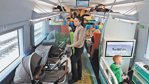 К этому можно добавить "детские игровые" в 5 двухэтажных поездах, следующих по маршрутам № 737/738 и № 740/739 сообщением Москва - Воронеж и № 737/738, 739/740 и 741/742 сообщением Москва - Брянск. В зоне отдыха для пассажиров с детьми, которая находится на втором этаже, есть мягкие детские диваны, телевизор, пазлы, кубики, мозаика, конструктор, стол и стулья. Места, расположенные напротив зоны отдыха, предназначены для пассажиров с детьми не старше 10 лет.