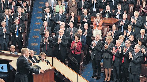Выступление Дональда Трампа длилось чуть больше часа и обошлось без традиционных шуток, перехода на личности и выпадов в адрес "лживых СМИ". Сдержанно вели себя и члены Демократической партии — даже когда президент в очередной раз пообещал отменить поддерживаемую ими программу медицинского страхования Obamacare. Лишь представители женской половины партии выразили протест против якобы имеющегося стремления новой администрации принизить заслуги женщин: они пришли на выступление Дональда Трампа в белом.