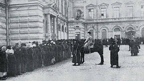 В 1916 и 1917 годах положение было уже не столь радостным. Цена на хлеб выросла почти вдвое, на мясо — в два с половиной раза. Ещё сильнее подскочили цены на промышленные товары. По тогдашним подсчётам, крестьянин, продав перед войной пуд пшеницы, мог купить 10 аршин ситца, а теперь — только два. В восемь раз подорожали гражданские изделия из металла. И многие крестьяне стали хранить зерно, ожидая, пока вернётся довоенный паритет цен. Добавились сбои в работе транспорта и ситуативная нехватка продовольствия в крупных городах. Одно из таких событий в Петрограде, в феврале 1917 года, стало катализатором уличных беспорядков, солдатского бунта и, как следствие, свержения царской власти.