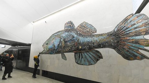 "Рыбу мечты" (опять же - в народной интерпретации) можно найти на станции "Нагатинский затон". Стены здесь украшены гигантскими изображениями карася, судака, плотвы и царь-щуки длиной в 14 метров.