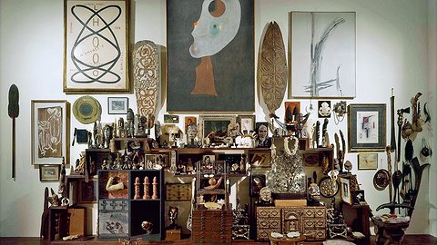 Дело, видимо, не столько в скептическом отношении раннего сюрреализма к живописи, сколько в эстетской разборчивости, но Миро станет одним из немногих художников, чья картина украсит «Стену мастерской» Бретона (речь о «Голове» 1927 года, похожей не то на череп в профиль, не то на палитру). Невообразимая коллекция, собиравшаяся на протяжении сорока с лишним лет, кунсткамера, где музей современного искусства встречается с музеями этнографии и естественной истории, инсталляция в пространстве и во времени, алтарь фетишизма и обсессий, автопортрет художника с юности до самой смерти — ныне «Стена мастерской» хранится и выставляется в Центре Помпиду. Тоже своего рода манифест коллективного творчества, одновременно первобытного и природного: маски, идолы, амулеты, куклы и свистульки со всего света перемешаны с морской галькой, раковинами и окаменелостям. Фотографии — при всем ее автоматизме и демократичности — на этой «Стене» практически не нашлось места.