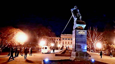 Даже самые лояльные журналисты ставят неудобные вопросы уже совсем не елейным тоном. Насилие над исторической памятью, не имеющей качественного измерения, уже вызвало вполне ожидаемый эффект в Харькове, который, как, вероятно, казалось киевским властям, удалось "подавить". Три уничтоженных как по команде (впрочем, не "как", а явно по команде) памятника - Орджоникидзе, Свердлову и красноармейцу Рудневу, снесенных по-воровски, ночью, и как водится людьми в масках, заставили рабочий коллектив Харьковского тракторного завода (ХТЗ), выступить с официальным заявлением, назвав этих сторонников "единой Украины" единственным достойным их словом - "бандиты".