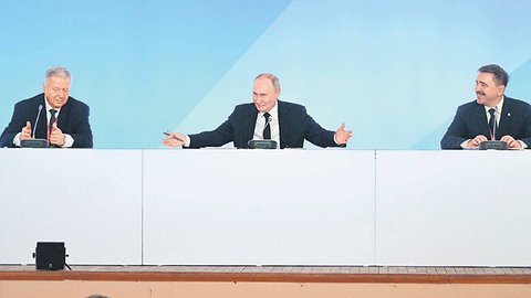В этот день у президента России было много публичных мероприятий. Так, сначала отгремело в Кремле. Из Национального центра управления обороной Верховный главнокомандующий руководил тренировкой стратегических сил с участием «средств наземной, морской и авиационной составляющих сил стратегического сдерживания. В ходе тренировки состоялись практические пуски баллистических и крылатых ракет». Отрабатывали массированный ядерный удар.