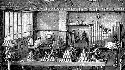 Однако уже в 1821 году, как свидетельствовал издававшийся в конце XIX века журнал «Русский архив», о консервах в России знали не только солдаты: «Теперь до такой степени совершенства дошли, что готовые обеды от Робертса в Париже посылают в Индию в каких-то жестяных посудах нового изобретения, где они сберегаются от порчи». Дело в том, что, вполне разумно рассматривая стеклянные банки и бутыли Аппера как ёмкости ненадёжные, английский изобретатель Питер Дюран предложил использовать банки жестяные и уже в 1810 году запатентовал своё изобретение. Сам Дюран внедрить изобретение в производство не смог и через два года продал патент Брайану Донкину и Джону Холлу. Тысяча фунтов стерлингов, потраченная на покупку патента, окупилась быстро – с 1813 года на фабрике Донкина и Холла началось производство консервов в жестяных банках для нужд британской армии и флота.