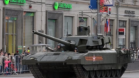 На параде 9 Мая в Москве маршировали, гремя железными набойками по брусчатке, десятки батальонных колонн («коробок»), в том числе «коробка» юных девушек в белых бантах и экзотические индийские гренадеры в традиционной парадной полковой униформе времен Британской империи. Над центром города пролетело 143 летательных аппарата, а по улицам проехало почти 200 единиц всякой военной техники, в том числе новые БТР, БМП, самоходки и разные ракеты, но все внимание было, конечно, сосредоточенно на танке Т-14 на универсальной гусеничной платформе «Армата».