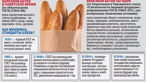 Косован объясняет: разрешение использовать низкие 4-й и 5-й классы зерна для муки понижает и содержание белка в хлебе. Мы и так недополучаем его — вокруг одни продукты-суррогаты. Кстати, 1,5 года назад «АиФ» и НП «Росконтроль» проводили экспертизу чёрного и белого хлеба: тогда в половине батонов нашли белка намного меньше, чем было обещано на упаковке. А значит, производитель экономил на муке!