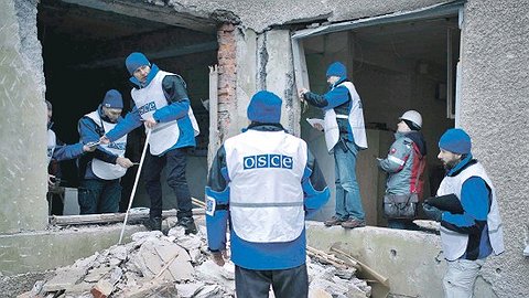 Специальная мониторинговая миссия (СММ) ОБСЕ на Украине была создана в марте 2014 года. В миссию входят гражданские наблюдатели, общая численность которых может достигать 1 тыс. человек. Ежедневно миссия предоставляет отчет о положении в Донбассе и в целом на Украине. Однако в отчетах последнего времени говорится о сотнях нарушений режима прекращения огня. СММ постоянно указывают на то, что у наблюдателей нет полного доступа ко всей территории конфликта, в частности к российско-украинской границе. Сотрудники миссии, будучи невооруженными, также не могут полноценно работать в горячих точках Донбасса.