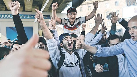 Самая массовая акция прошла вечером в воскресенье. По данным оппозиции, в митин- ге на площади Республики приняли участие до 160 тыс. человек, или более 5% населения страны (всего в Армении, по официальным данным, проживают 2,9 млн человек). По данным полиции, на улицу вышли 35 тыс. человек. Таким образом, протесты ста- ли самыми массовыми с конца 1980-х, когда в республике проходили акции в поддержку независимости Нагорного Карабаха.