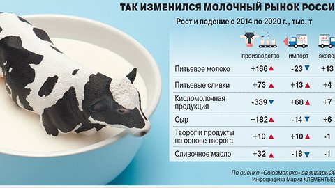 В 2020 г. кризис не помешал российским молочникам поставить рекорд: экспорт вырос на 23%. Но импорт масла, творога, ­сыра и ­питьевого молока тоже приблизился к рекордным отметкам.