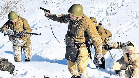 …Заспанный город приходит в себя после затянувшейся пятницы. Прибавляем скорость на еще свободном Третьем транспортном, сворачиваем на проспект Жукова. Легендарный маршал, весь в орденах, смотрит на город с торца многоэтажки — напутствие перед поездкой? Стоило пересечь границу Москвы, как из весны в зиму попали. Резко потемнело. Мелкие мошки надоевшего снега бьются в лобовое стекло. «Когда взойдет весна… И смерти вопреки…» — звучит в салоне песня «Агаты Кристи». Свет фар выхватывает из белой пелены идущие впереди грузовики с защитной маскировкой.